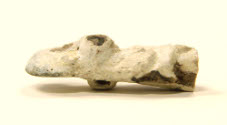 DescriptionCream faience with tint of green. War goddess Sekmut? Disk on lioness head, uraeus broken off.On View