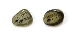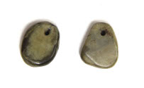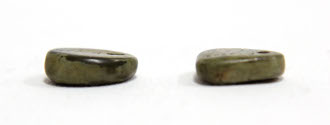 DescriptionGreen turquoise, flat on two sides. Pierced at one end. One is oval, one is a trapezoid.On View