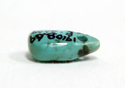 DescriptionOne of a pair of polished blue turquoise earings. Triangular shape, top pierced with hole.On View
