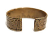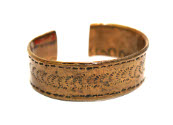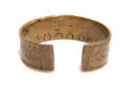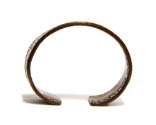 DescriptionHeavy copper bracelet, cuff style, engraved with semi-circles with pointed instruments. Border of double dots. Incised on inside with circles.On View