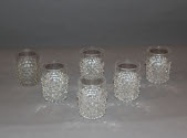 DescriptionSix hobnail pattern tumblers (all with same number). Plain rim, rest hobnail (one is not in the same pattern - it doesn't have hobnails on the base and the pattern is not as large, tumbler is slightly shorter). Six mold made.On View