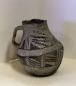 DescriptionPossibly Cortez Black on White pitcher. Eroded condition renders identification impossible. One handle, pale gray slip, black geometric designs. Concave bottom, unpolished surface.