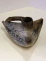 DescriptionTri-lobed pitcher (duck-shaped vessel) slipped in white with black design.