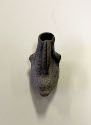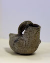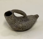 DescriptionMancos Black on white bird (duck) shaped vessel. Slipped in white with black dots. Broad flat tail, wings modelled. Handle made of two cylindrical pieces of clay.On View