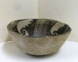 DescriptionPiedra Black on White. Geometric design on interior, not on exterior. Slipped inside with white and painted with black design on inside.On View