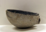 DescriptionBowl of small dipper, slipped in white with black symmetrical geometric design on interior. Probably 2 - part looped handle. 2 stubs remaining.On View
