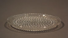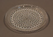 DescriptionHobnail pattern, round plate. Hobnails get larger in size toward the outer rim of the plate, then the outer edge of the plate is banded with small hobnails.