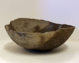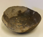 DescriptionLarge shallow coiled dish. Appears to be bottom portion of a gray ware vessel, the uneven edges suggest the upper portion was broken and lower half modified into a serving dish.On View