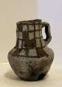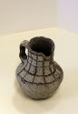 DescriptionMancos Black on White pitcher, gray slip, checkered band around neck and top of body in black. Two diagonal rows of blocks filled with solid black on one side.