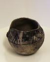 DescriptionPossibly Cortez or Mancos River Black on White jar dated between 900-1000AD (School for American Research) Uneven geometric around neck staggering diagonal checkered rectangles and inverted "V" design. Slipped with pale gray on outside only. Black border. Can see juncture where handle would attach i.e. was probably a pitcher, also shape appears like the base of a pitcher.On View