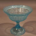 DescriptionCompote, "Wildflower" pattern, blue, three mold made, pressed glass.On View