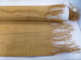 DescriptionGrasses woven on looms. Natural color. Five sections tied with grass to form long piece. Fringe left at both sides.On View