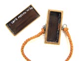 DescriptionBlack laquer box with design of gold foliage. Two ties with tassels of orange silk fastened to silver metal rings. Used as dinner favors.On View