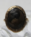 DescriptionRing with locks of hair under a glass. Gold oval shape.On View