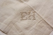 DescriptionWhite cotton batiste of very fine texture. Three rows of insertion lace (or intricate hemstitching 3.8 cm). initials "E.H." embroidered in one corner.On View