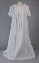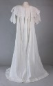 DescriptionWide embroidered ruffle around the neck and sleeves - leaf pattern. White cotton - neck ruffle is attached with beading for running in ribbon. On the right sleeve monogram "M" in a medallion. Linen lawn, hand embroidered & applique type done by nuns. Part of wedding trousseau: C-2338 - 40.On View