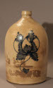 DescriptionFive gallon stoneware jug, blue design on front, floral. Few stains in glaze.On View