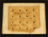 DescriptionPiece of hardtack sent home by Charles Wainwright during the Civil War. They were given twelve of these squares for a day's ration. Sent to his mother while he was in the army. It is inscribed. Framed, set in cotton batting. Enclosed in a glass- top box.On View