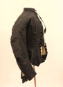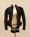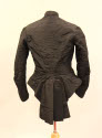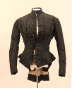DescriptionBlack faille waist with bristle effect in the back. It buttons up the front with black buttons and has a narrow standing collar and tight sleeves. It is lined with black and white checked material.On View