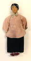 Descriptionsilk skirt, pink figured silk coat trimmed with pale green, black silk headdress; red cloth shoes; lavender brocade pantsOn View