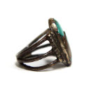DescriptionNavajo ring. Set with green-brown turquoise. Silver. Stone is oval 2 cm x 1 cm. crack across stone.On View