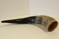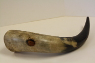 DescriptionLarge curved horn-remnant from a water pipe. Hole 2.5 cm wide in top at wide part, carved out where attachment went. Natural color with black at tip.