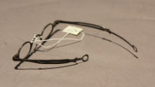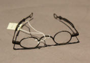 DescriptionOval lensed steel eyeglasses/spectacles, with sliding temples, with 1 cm rings at end. On left temple "100".On View