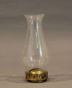 DescriptionLamp with chimney.Glass lamp on a black square base, stem is painted in a floral design with gold metal attachments at either end. Above the stem is a large rounded glass piece which is engraved with a pattern. Above that is another metal attachment with a long turning knob on the side.