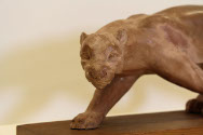 DescriptionPainted plaster panther, in walking pose.Striding plaster panther; terracotta color, on wooden base