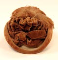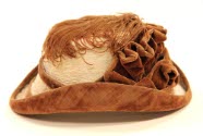 DescriptionSmall plumed hat to match the wedding dress (1950.1.1-.3 or C-2633). Hat is white fur and felt with brim of brown velvet and a shirred velvet trim in front. Two brown velvet plumes over the crown.On View