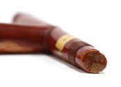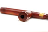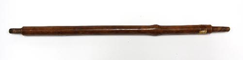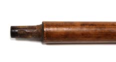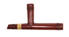 DescriptionT - shaped redstone pipe with fine carved rings on each end in relief. Y shaped relief carved where T is. Woodstone has knots and is polished.On View