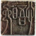 DescriptionTall square shape. Flower carved in top with leaves in relief, in greenish soapstone.