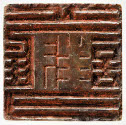 DescriptionSeal of soapstone with lion handle. Mottled reddish color stone.