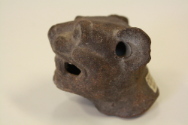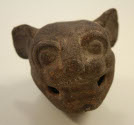 DescriptionHollow jaguar head with holes in ears and corner of mouth.On View