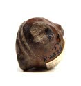 DescriptionA small, hollow head with a small ball inside, like a rattle. The eyes are holes, incised lines on cheeks and forehead. The nose is upturned. Monkey?. Highly burnished brown slip.On View