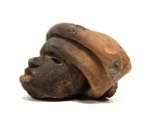 DescriptionHead from figurine, dark grey ware, wide headdress in three horizontal bands "wrapped" around head.On View