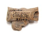 DescriptionFragment of whistle(?) with monkey head appliqued on side. The head has a projected pointed forehead.On View