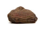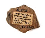 DescriptionBroad face with headdress and scalloped design; traces of red paint on headdress.