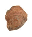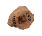 DescriptionMold made face with headdress and earplug. Reddish clay.