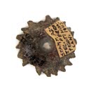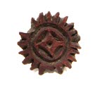 DescriptionA flat stamp of gray clay with a residue of red pigment on the design. The design is a geometric one, probably representing a flower. See accession card for drawing.On View