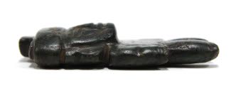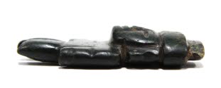 DescriptionSerpentine figure, very dark green, almost black. Flat standing frontal figure with the wide horizontal headdress characteristic of Early Classic Teotihuacan and Monte Alban.On View