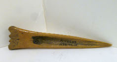 DescriptionMade of small bone cut vertically to make use of the hollow interior. Top notched to give secure grip or merely for decoration.On View
