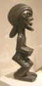 DescriptionBearded figure with crested hairdo, bent knees; stained black wood; silver tracesOn View