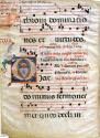 DescriptionOn first side is an illuminated "B" in red and blue which looks Northern; the music is done on a four line staff and there are six of these lines on the page with the verse written beneath the notes; verso: halfway down the page is an illuminated "O" (may be French or Italian) in blue, orange, green, gray, gold, pink-brown and white; a cherubim is in the center, with his wings folded about him.On View