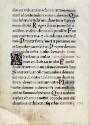 DescriptionPage of latin text in brown ink with certain words and initials in lighter brown ink; capitals A, E, P. D, S and I in blue; 2 decorated initials: gold L-shapes on bright blue square with white, green and red intertwining motif; 2 numbers in right margin top: 139 bottom, 192 written in pencil along base; verso: also Latin text, initial A decorated, two numbers in right margin