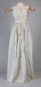 DescriptionBatiste-weight linen, white with blue stripes, bib, floor length.On View