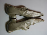 DescriptionSatin shoes, white color, worn at a wedding. Pointed toe buttoned strap over instep, 1 1/4" satin covered heels lined in white kid.On View