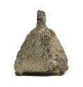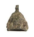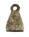 DescriptionBell shaped, rectangular opening with four tiny protuberances? Ring at top. E book? says Iron but pin points of shiny stuff.On View