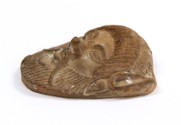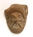 Descriptionhead of satyr with mustache; full beard and hair curved around forehead; incised lines indicate texture; upturned nose; large pointed ear