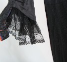 DescriptionBlack silk dress, yoke and skirt of black crepe, trimmed with paisley design silk.